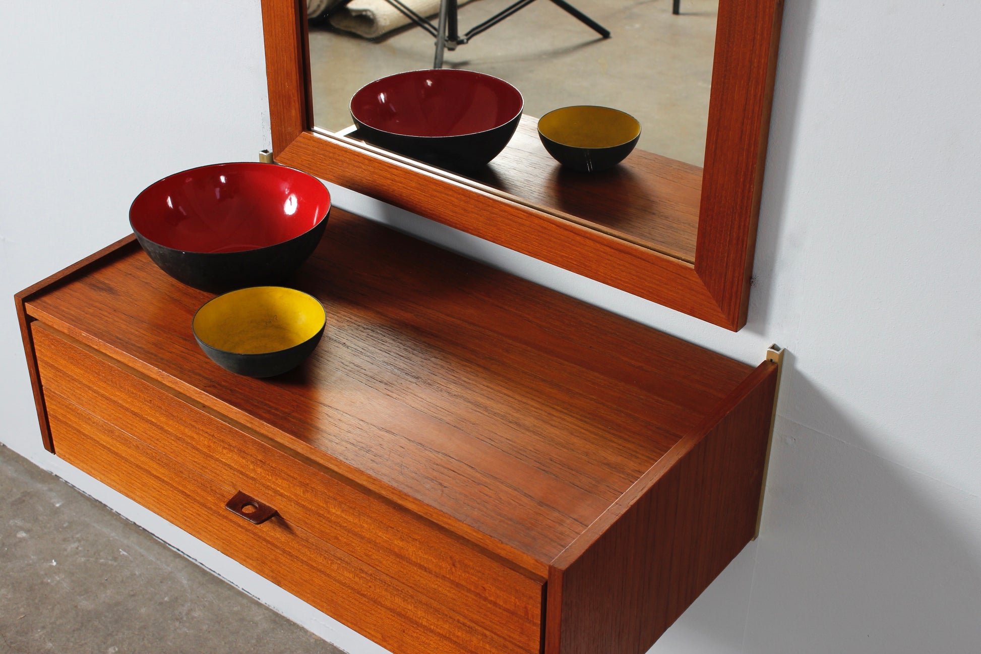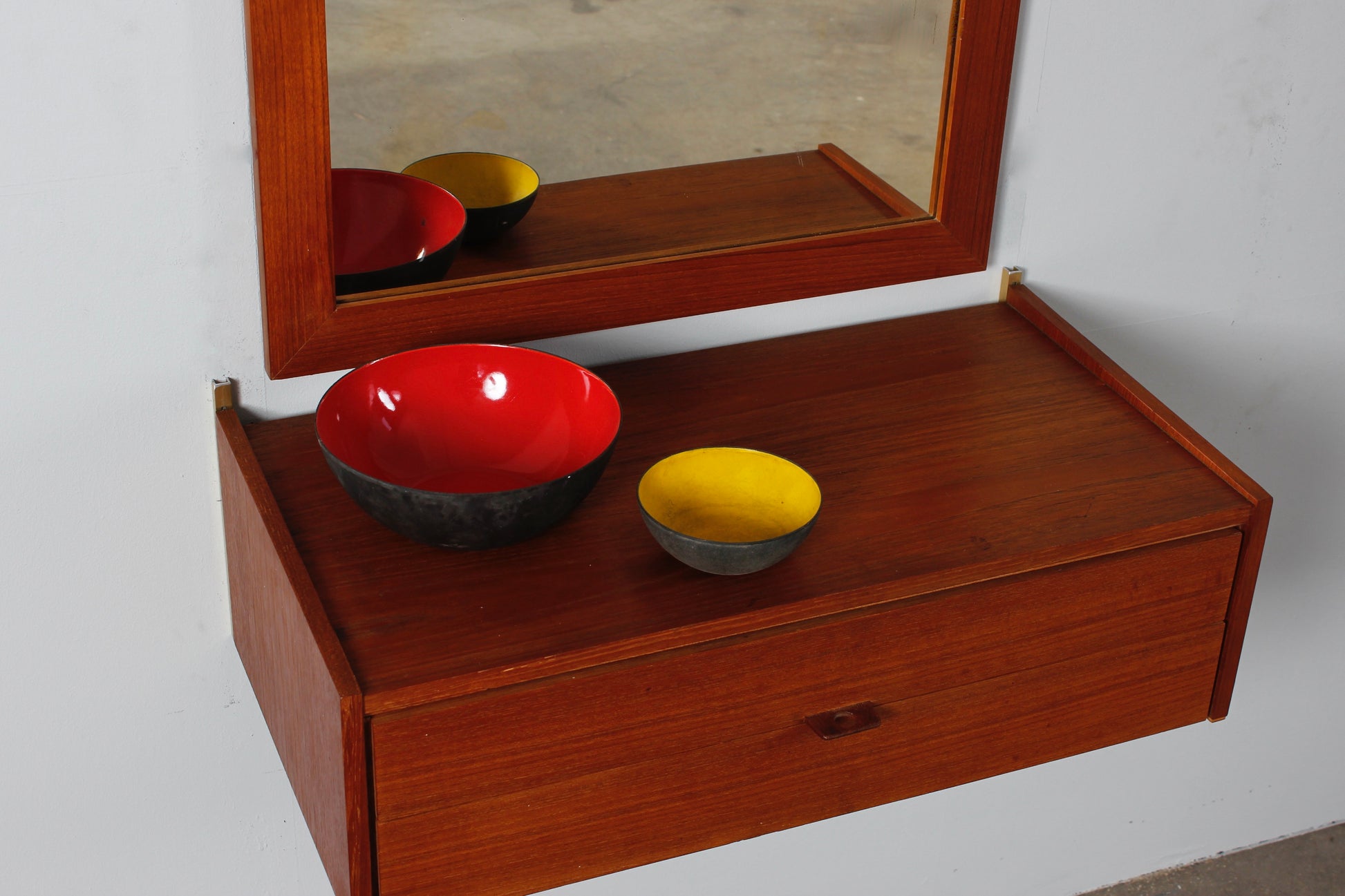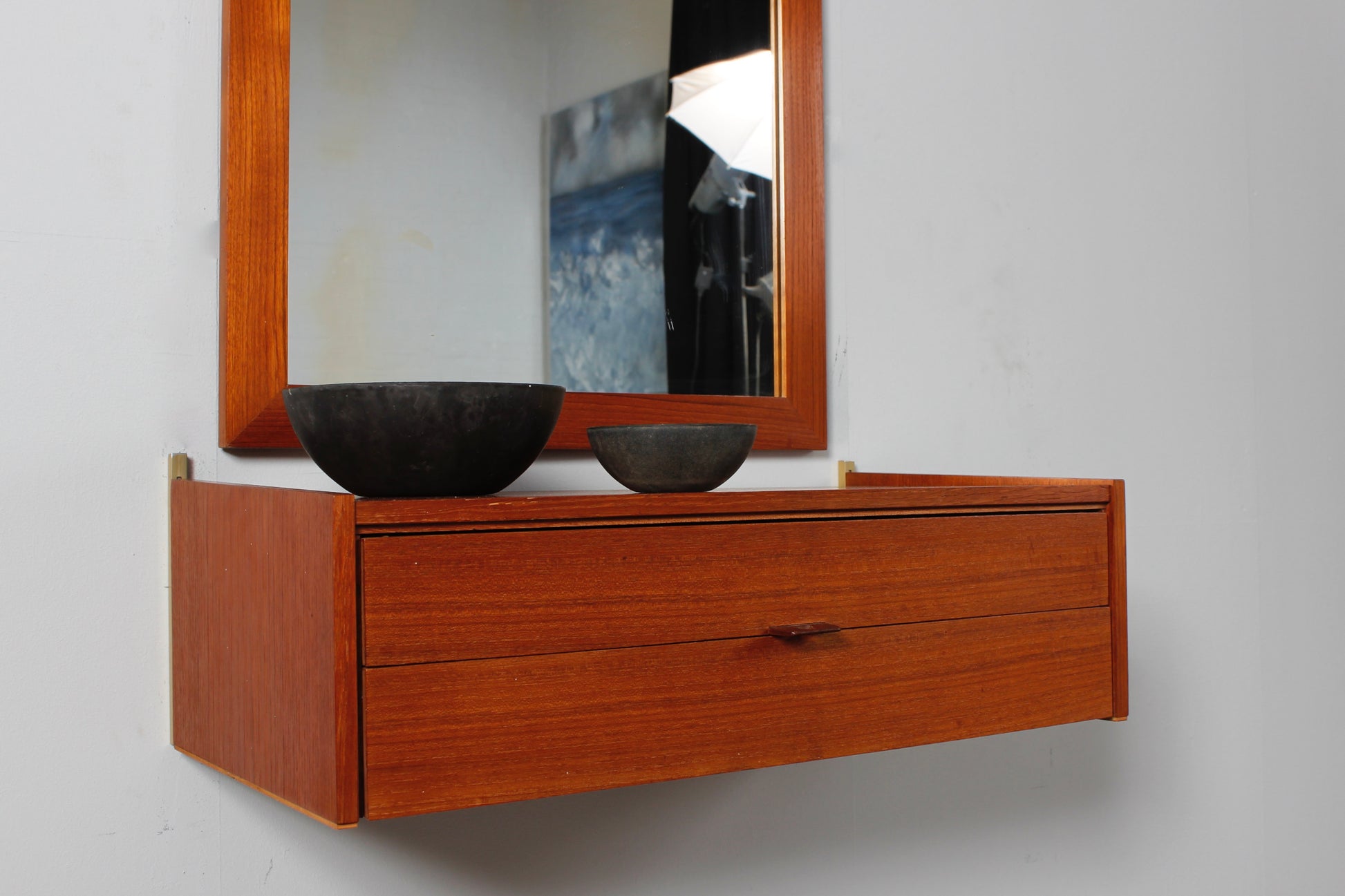 Teakholz Wandkonsole von WKS mit Wandspiegel